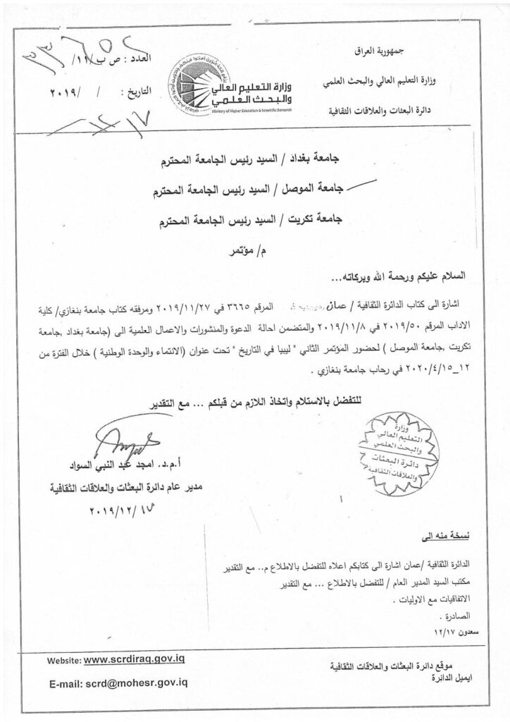 علماً ان اخر موعد للتقديم يوم 2020/1/25، وسيكون عبر الرابط الخاص لدائرة البعثات والعلاقات الثقافية: http://scrdgate.scrdiraq.gov.iq .