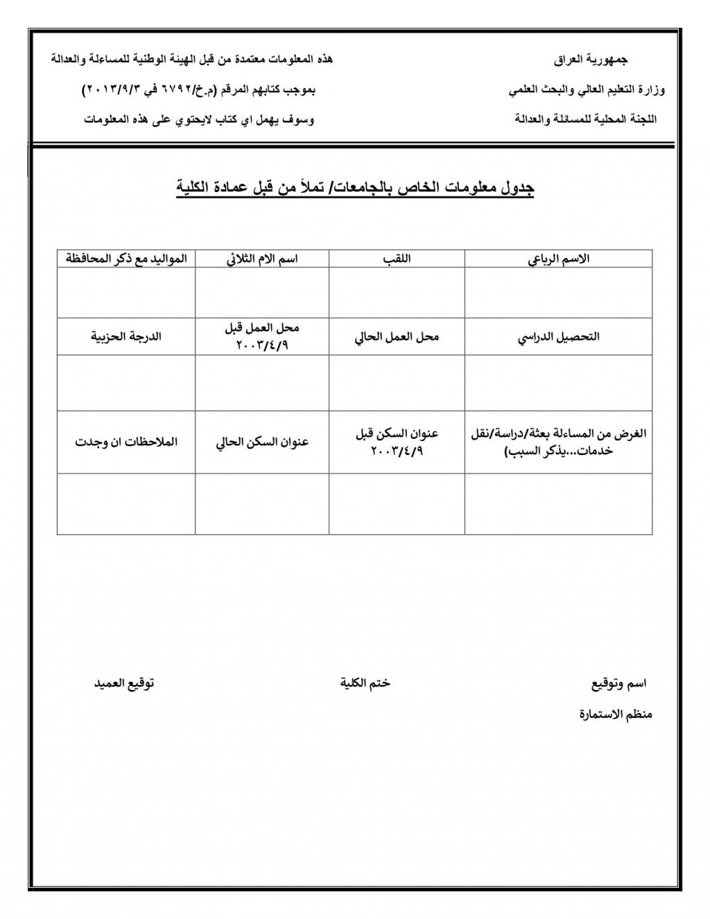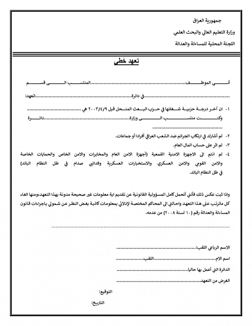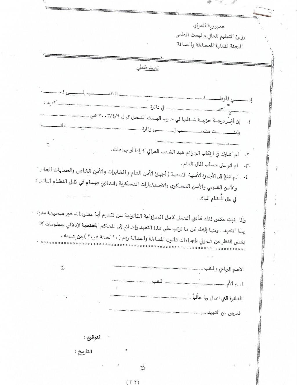 1_ يرجى ملئ استمارة المساءلة والعدالة المرفقة وارسالها مع كافة الاوراق المطلوبة