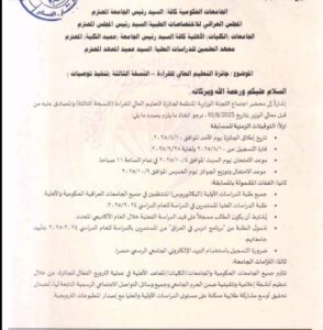 تدعو كلية طب الأسنان – جامعة الموصل جميع الطلبة الراغبين بالمشاركة في جائزة التعليم العالي للقراءة إلى مراجعة وحدة الشؤون العلمية يوم الثلاثاء لتثبيت أسمائهم، أرقام هواتفهم، والمرحلة الدراسية.