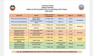 عن المواد المشمولة بالامتحان التنافسي لطلبة الماجستير والدكتوراه للعام الدراسي 2025-2026.