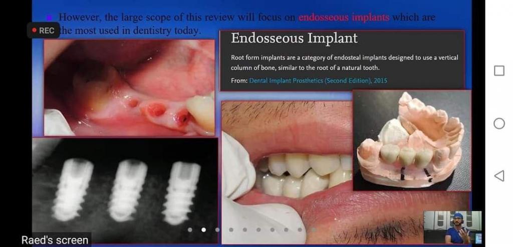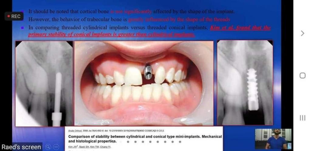 و تناولت المحاضرة أهم النقاط الأساسية في الجزء الجراحي من عمليات زراعة هذا النوع.. كما وضح الدكتور عددا من الحالات و المشكلات التي تواجه أطباء الأسنان خلال هذه العمليات و كيفية تشخيصها و التغلب عليها.