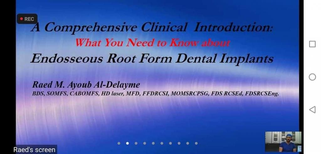 المقيمين في ولايه ميرلاند/ أميركاالدكتور رائد حاصل على بكالوريوس طب و جراحة الفم و الأسنان / جامعة الموصل ، و على البورد العربي في جراحة الفم و الوجه والفكين و زمالة العديد من الكليات الملكية و الشهادات.هذه المحاضرة هي استمرار لسلسلة المحاضرات العلمية عبر الإنترنت (الويبينارات) التي تقيمها الكلية ضمن الجهود المبذولة للتواصل و الانفتاح و التعاون مع مختلف الجهات في تطوير المستوى العلمي و العملي لأطباء الأسنان بشكل عام و لكادر الكلية بشكل خاص.