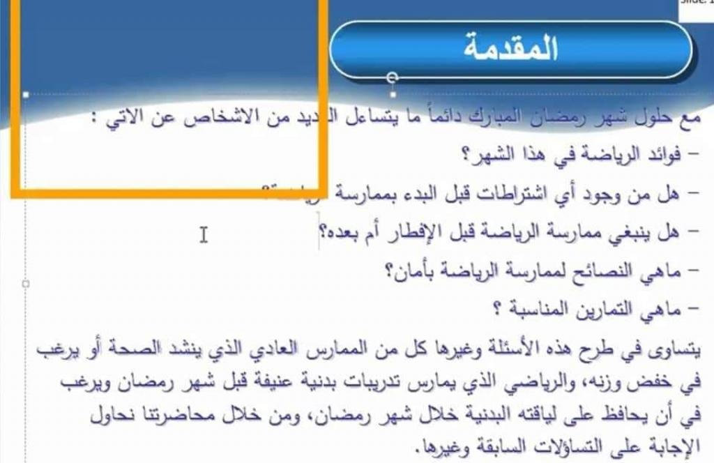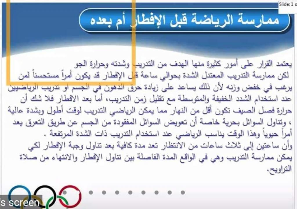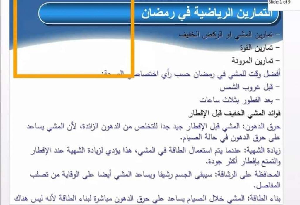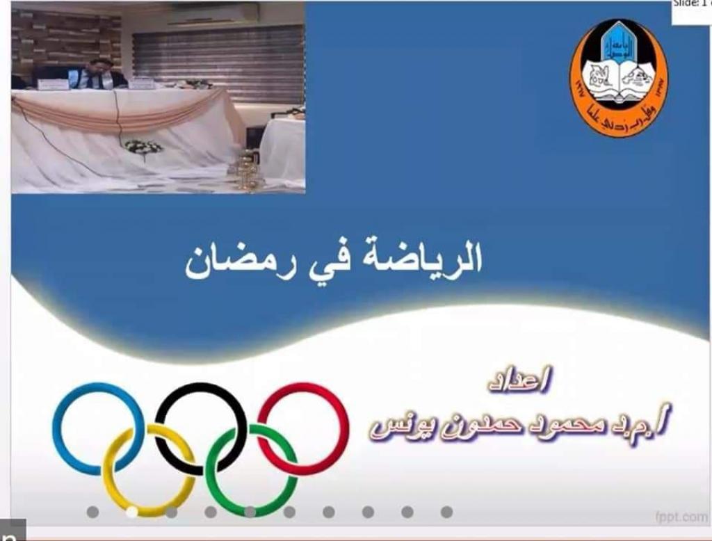 إقامة ورشة عمل إلكترونية عن الحمية الغذائية و أنواعها و ممارسة الرياضة في شهر رمضان.