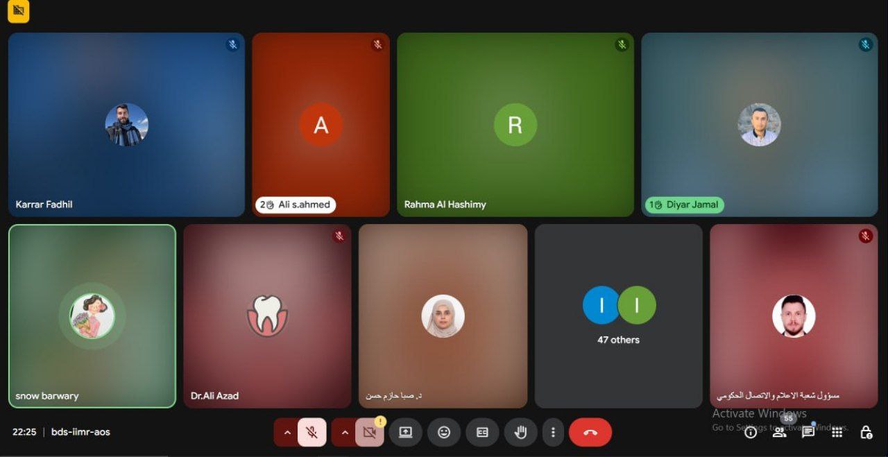 عقدت مسؤولة شعبة الدراسات العليا، ا.م.د صبا حازم حسن يوسف، اجتماعاً إلكترونياً عبر منصة Google Meet مع طلبة الدراسات العليا المقبولين للعام الدراسي 2025-2026، وذلك لتوضيح التفاصيل والرد على كافة استفساراتهم.