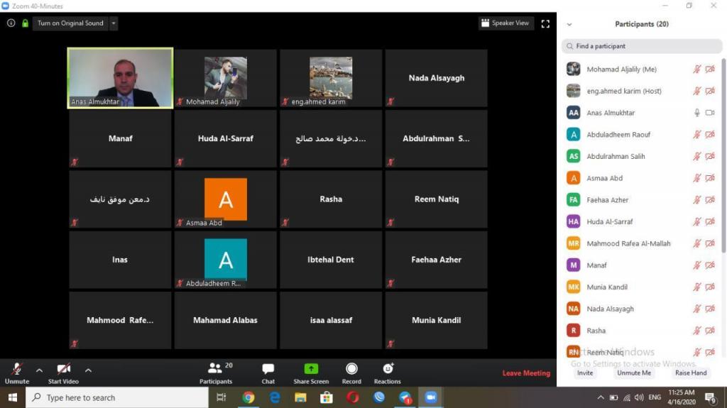 تم بعون الله اختتام اعمال الدورة التدريبية التي اقامتها كلية طب الاسنان في جامعة الموصل والتي استمرت لمدة خمسة ايام ( 114-164). واشتملت الدورة على محاضرات لشرح التطبيقات المستخدمة في التعليم الالكتروني و التطبيق العملي من قبل السادة التدريسيين ومن ثم مناقشة المشاكل في اليوم التالي. اشترك في تحضير الدورة كل من م.د. انس محمد يوسف المختار (رئيس اللجنة التحضيرية)، أ.م. علياء وميض، م.د ظفر خزعل، م.م. مناف باسل احمد و كل من معاون رئيس مهندسين احمد عبد الكريم والمهندس أقدم محمد نمير عبد الجبار والمهندس اقدم احمد ضياء.