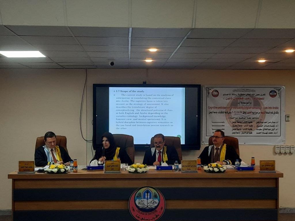 استضافة كلية طب الأسنان لمناقشة رسالة ماجستير في كلية الآداب/ قسم الترجمة