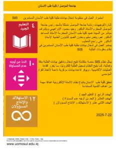 تحقق كلية طب الاسنان باتباع نظام إلاتمتة الإلكترونية اهدافا مهمة من اهداف التنمية المستدامة الهدف الرابع ( التعليم الجيد ) والهدف العاشر ( الحد من أوجه عدم المساواة ) والهدف الثاني عشر ( الاستهلاك و الإنتاج المسؤولان ).