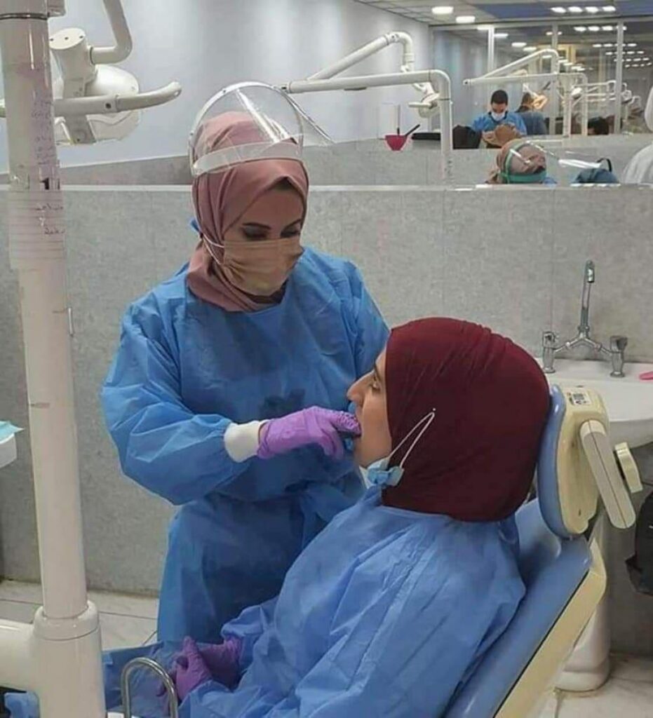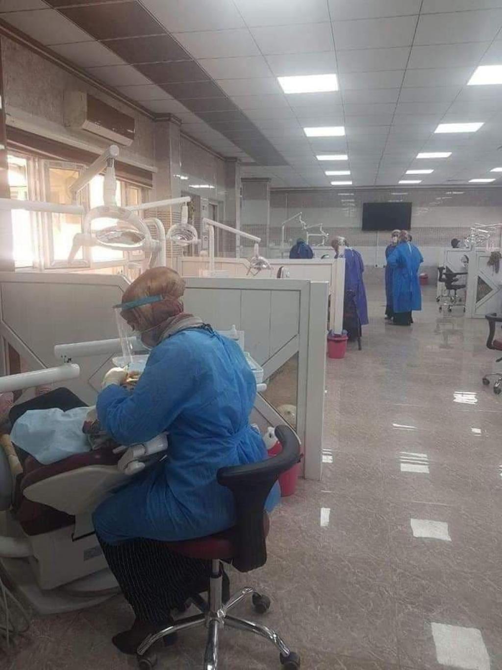 حسب توجيهات وتعليمات وزارة التعليم العالي والبحث العلمي استمر طلاب المرحلة الخامسة في كلية طب الأسنان في فرع علاج الأسنان التحفظي باستقبال المرضى وعلاج الحالات السريرية ضمن المنهاج العلمي المقرر مع الاخذ بكافة الإجراءات الوقائية اللازمة من التعقيم ولبس البدلات الوقائية والكمامات الطبية مما يضمن سلامة المرضى والطلاب والكادر التدريسي.