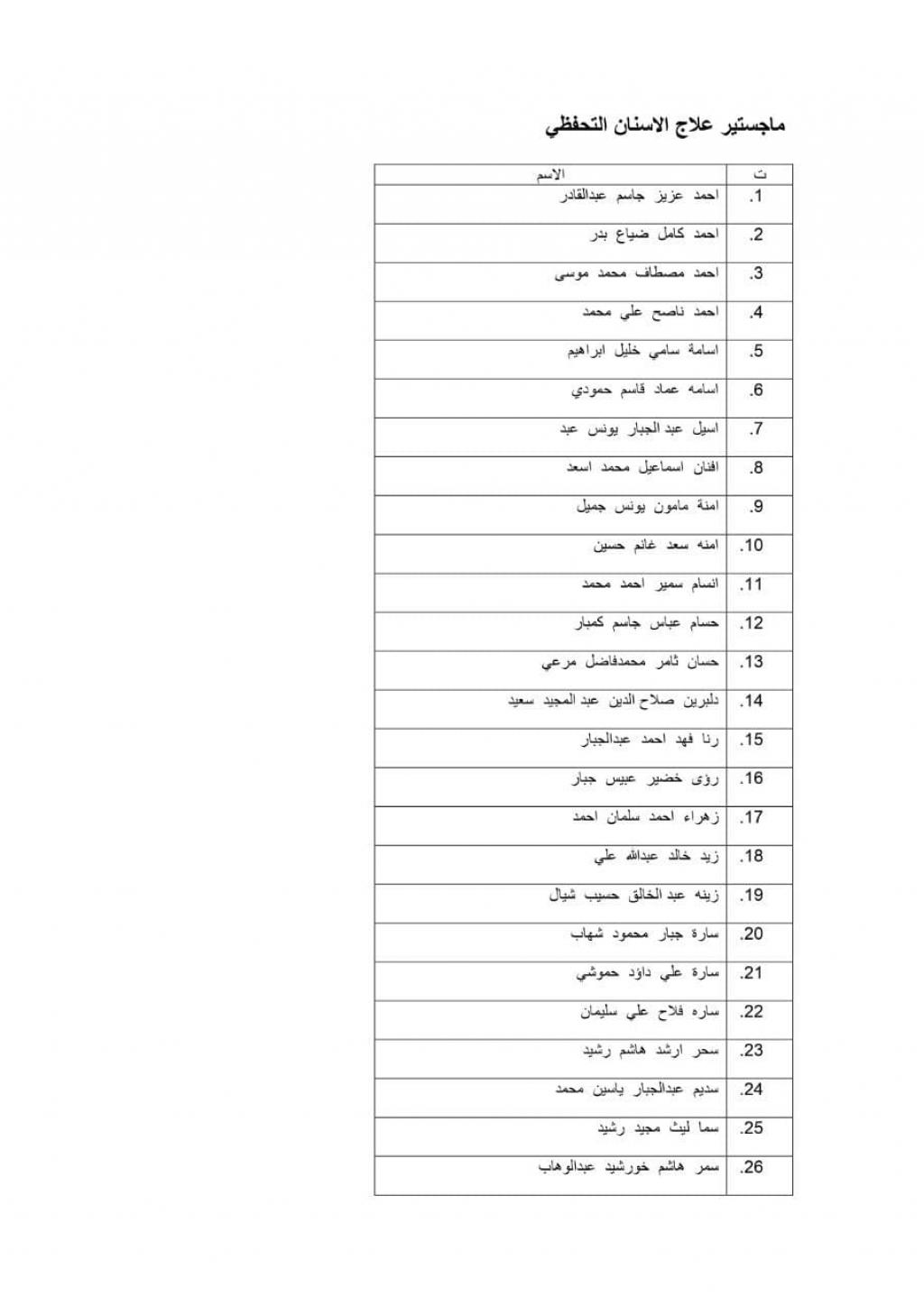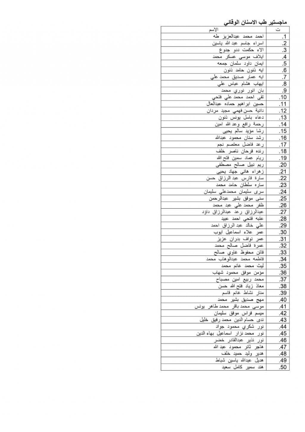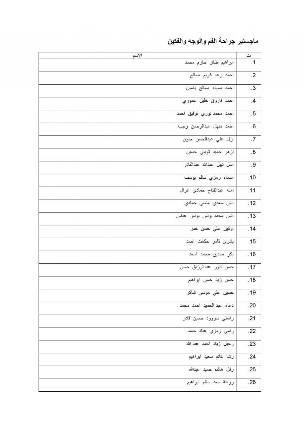 اسماء المتقدمين للدراسات العليا للعام الدراسي 2022/2021