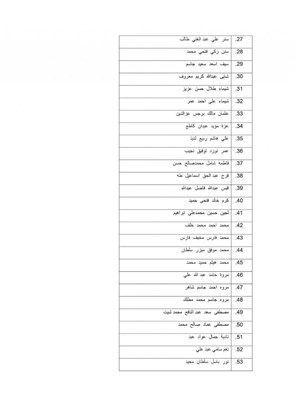 اسماء المتقدمين للدراسات العليا للعام الدراسي 2022/2021 والذين تم تدقيق استماراتهم الالكترونية والمشمولين بالدخول إلى الامتحان التنافسي