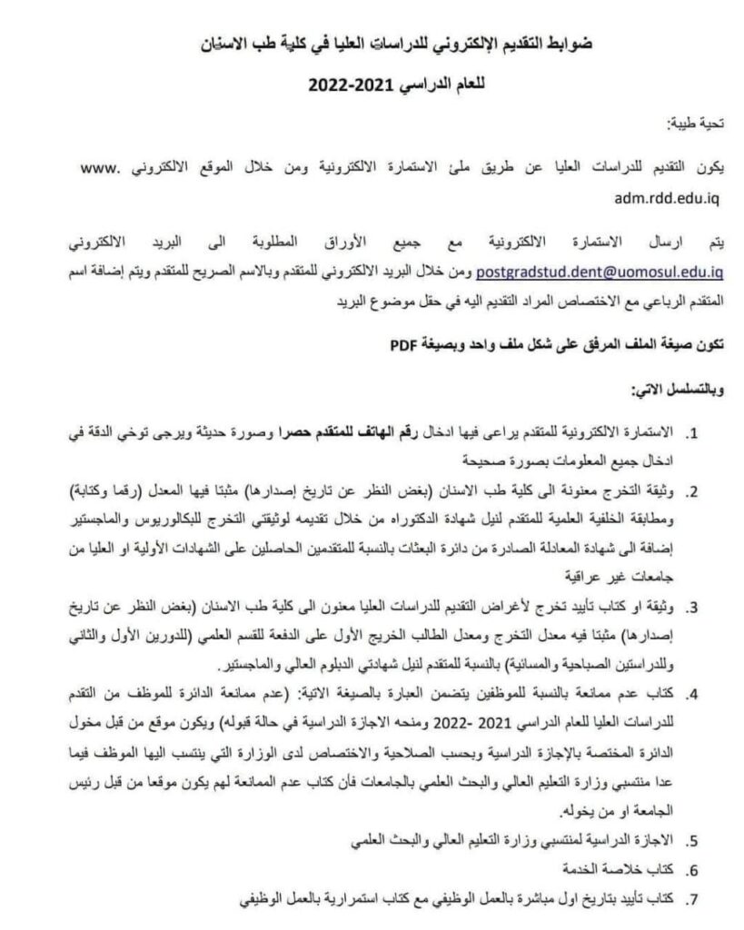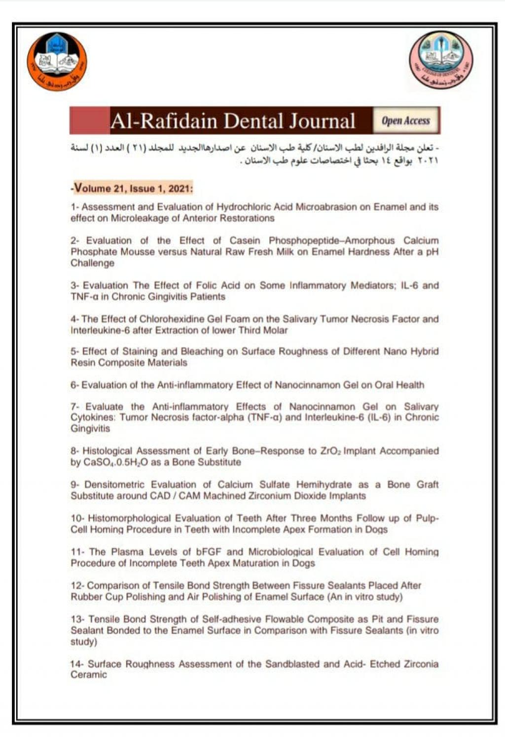 اصدار مجلة الرافدين لطب الاسنان/كلية طب الأسنان – جامعة الموصل للمجلد (٢١) العدد (١) لسنة ٢٠٢١ بواقع ١٤ بحثا في اختصاصات علوم طب الاسنان