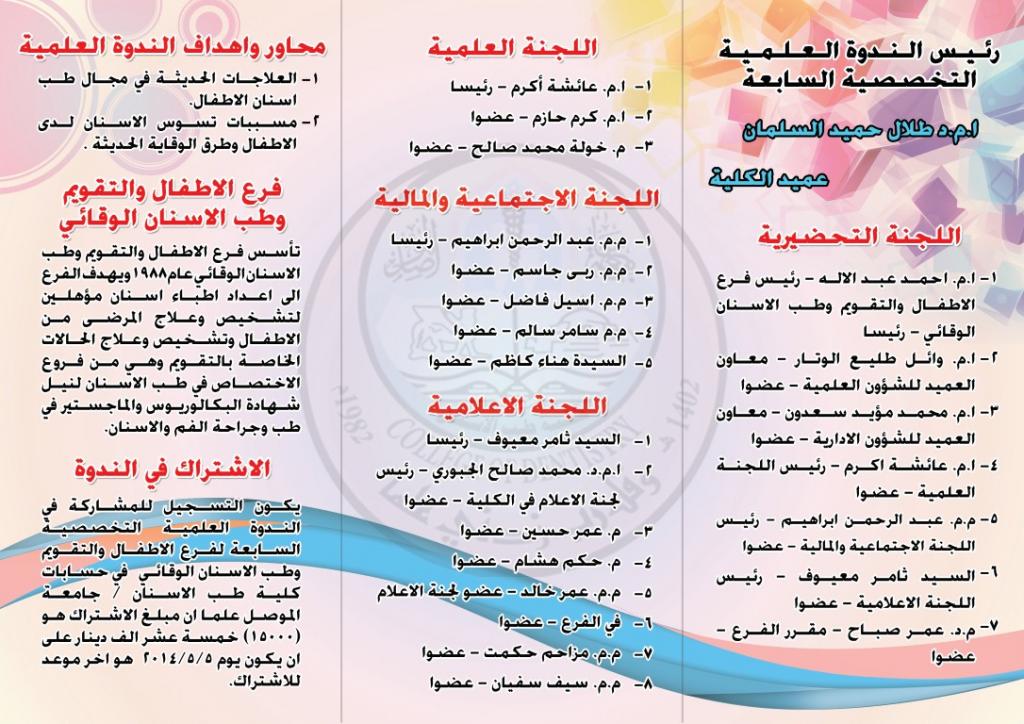 اعلان:الندوة العلمية التخصصية السابعة لفرع الاطفال والتقويم وطب الاسنان الوقائي
