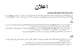 اعلان الى طلبة معادلة الشهادة (نظام محاولات)