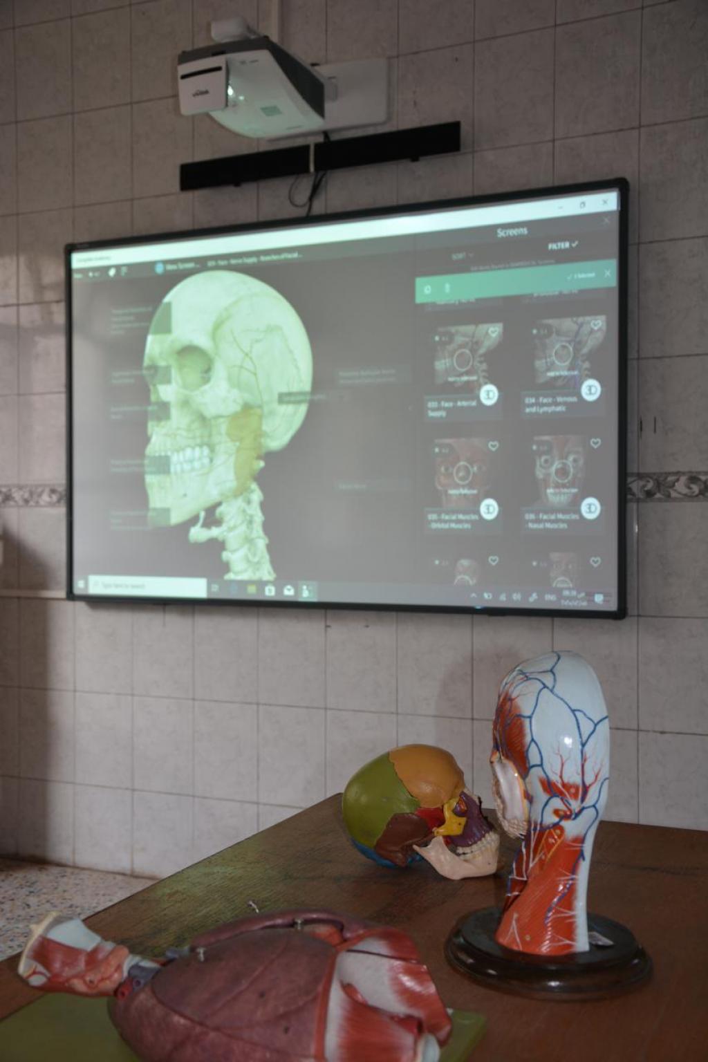 من الجهود المبذولة لتطوير المستوى العلمي للطلبة في كلية طب الأسنان، وفرت عمادة كلية طب الاسنان و بمتابعة و إشراف السيد العميد أ. م. د. ريان سالم حامد ، ورئيس فرع علوم طب الاسنان الاساسية بتزويد مختبر التشريح البشري بإحدى أحدث التقنيات العالمية المستخدمة في تدريس علم التشريح البشري في الكليات الطبية، والمتمثلة بشاشة ذكية تفاعلية تحتوي على برنامج متكامل في علم التشريح البشري. و يعد علم التشريح من المواد التي يشرف على إعطائها فرع علوم طب الأسنان الأساسية لطلبة الدراسة الأولية ضمن المرحلتين الأولى والثانية بالإضافة إلى طلبة الدراسات العليا المتمثلة بالدبلوم و الماجستير و والدكتوراه في مختلف اختصاصات الكلية. و تعد هذه التقنية من التقنيات الحديثة والفعالة في تدريس علم التشريح، لما لها من امكانيات واسعة في تسهيل عملية إيصال المادة و زيادة استيعاب الطلبة للأجزاء التشريحية بصورة ثلاثية الأبعاد. و هذه من أهداف الكلية و فرع علوم طب الأسنان الأساسية ، لأجل خلق جيل متميز من اطباء اسنان.(إعلام كلية طب الأسنان)