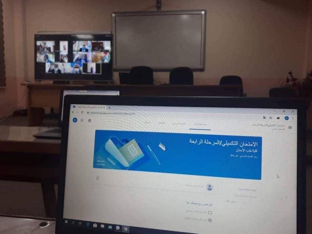 انسجاما مع توجيهات وزارة التعليم العالي و البحث العلمي لتيسير أمور الاختبارات (الإمتحانات) لطلبتنا و متابعتها في ظل الحالة الوبائية، شرعت كلية طب الأسنان بتجهيز قاعة بمجموعة من المستلزمات التقنية و الرقمية لهذا الغرض. و قد جهزت قاعة المرحوم أ. د. عامر طاقة بشاشة عرض و حاسبات و اتصال بالإنترنت كخطوة أولى لتجهيز قاعة متكاملة بأحدث التقنيات، و التي تروم فيها الكلية حتى إلى القيام بالويبينارات و الاستضافات المختلفة. و على هذا الهامش أجري اليوم الامتحان التكميلي لطلبتنا الأعزاء عبر الفضاء الإلكتروني استكمالا للامتحانات التي ابتدأت منذ الأحد ١٤/ حزيران / ٢٠٢٠، حيث امتحن طلبة أربع مراحل دراسية، و كانت هذه القاعة وحدة متابعة لسير الامتحان. و بتواصل مع السيد عميد كلية طب الأسنان أ. م. د. ريان سالم حامد و بحضور السيدة معاون العميد للشؤون العلمية أ. م. د. نعم رياض، حضر السادة التدريسيون و أعضاء اللجنة الامتحانية إلى القاعة استعدادا للتواصل مع أي رابط لدائرة تواصل إلكتروني من وزارة التعليم العالي و البحث العلمي. يذكر أن الوزارة تقوم بعمل تواصل إلكتروني للإطلاع على سير العملية الامتحانية و التواصل مع الطلبة، و التي تتضمن أيضا اتصال معالي الوزير مع السادة رؤساء الجامعات في العراق للإطلاع على الموقف الامتحاني بصورة يومية.