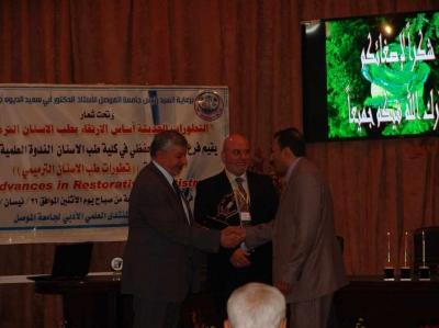 برعاية السيد رئيس الجامعة الاستاذ الدكتور ابي سعيد الديوةجي اقيمت الندوة العلمية التخصصية الثانية لفرع العلاج التحفظي الموسومةتطورات طب الاسنان الترميميوذلك على قاعة المنتدى العلمي الادبي لجامعة الموصل بتاريخ 21-4-2014. وقد تضمنت الندوة محاضرات علمية لاخر التطورات في طب الاسنان الترميمي. وفي هذه الاجواء اقيمت ورشة عمل تخصصية لاعادة ترميم حشوات الجذور الغير ناجحة.