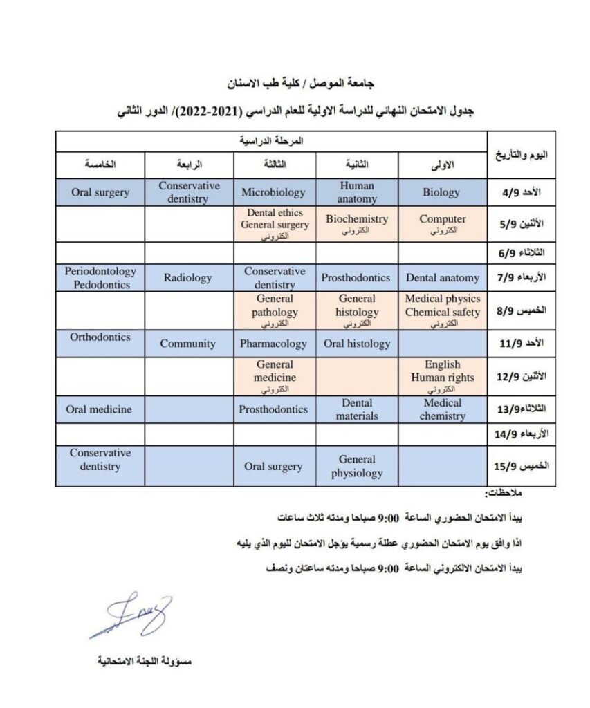 ابتدأت كلية طب الأسنان اليوم الخميس الموافق ل ١/ ٩/ ٢٠٢٢ بإجراء امتحانات الدور الثاني لطلبة الدراسات الأولية والعليا في الكلية.
