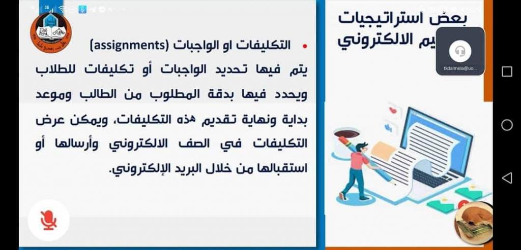 تنفيذاً لتوصيات وزارة التعليم العالي والبحث العلمي باعتماد نظام التعليم المدمج للعام الدراسي الجديد ٢٠٢٠-٢٠٢١