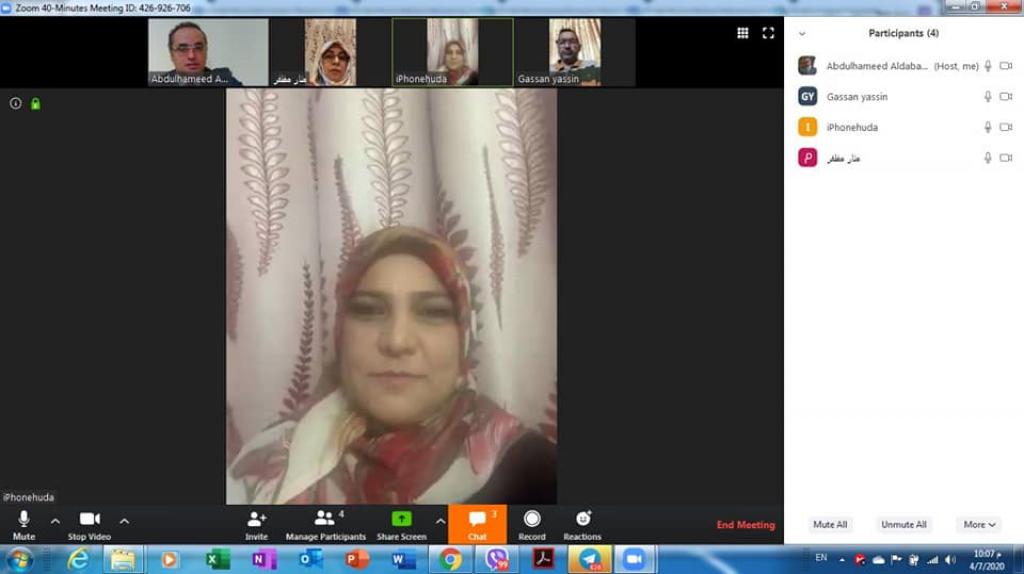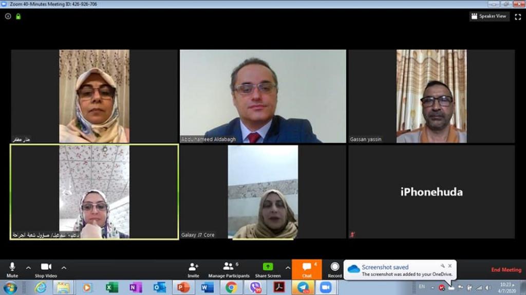 عقد مجلس فرع جراحة الفم و الوجه والفكين جلسته الإلكترونية برئاسة السيد رئيس الفرع د. عبد الحميد ناطق الدباغ، و ذلك يوم الثلاثاء ٢٠٢٠/٤/٧ ، و على نظام zoom..