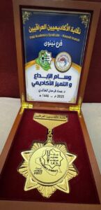تكريم الأستاذ الدكتور عماد فرحان الخالدي التدريسي في كلية طب الأسنان/ جامعة الموصل من قبل نقابة الأكاديميين العراقية ( فرع نينوى ) بمناسبة يوم الاكاديمي العراقي  وذلك لحصوله على أعلى درجة تقييم سنوي  للعام الدراسي ٢٠٢٢ – ٢٠٢٣.