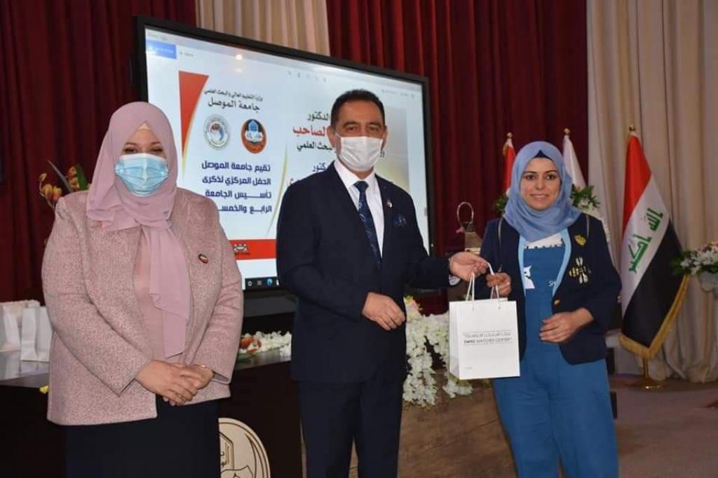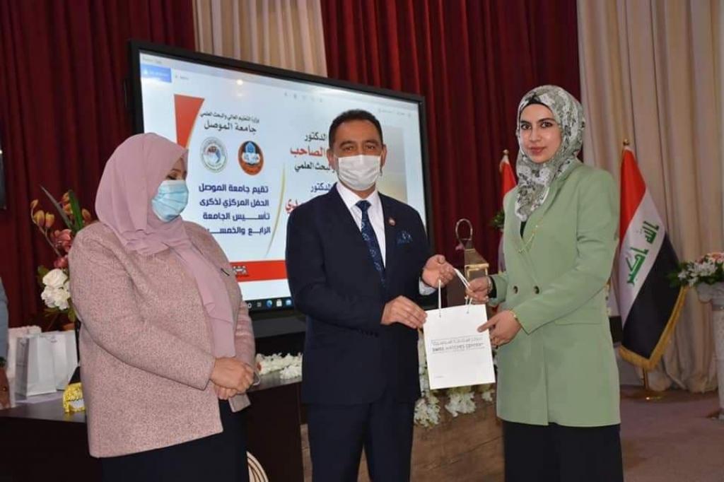 ضمن فعاليات يوم الجامعة بذكرى تأسيسها الرابعة و الخمسين الذي أقيم برعاية كريمة من معالي وزير التعليم العالي والبحث العلمي الأستاذ الدكتور نبيل كاظم عبد الصاحب وإشراف الأستاذ الدكتور قصي كمال الدين الأحمدي رئيس جامعة الموصل يوم الخميس الموافق ل ١ نيسان ٢٠٢١.. حضرت الأستاذ المساعد الدكتورة نعم رياض سليم معاون عميد كلية طب الأسنان العلمي مع السيدات و السادة من رؤساء جامعات نينوى و عمداء الكليات وعدد من المسؤولين والشخصيات في الحفل الذي أقيم في رحاب المنتدى العلمي و الأدبي. حيث تم تكريم عدد من أساتذة الكلية وطلبتها الاوائل للاعوام الدراسية ٢٠١٨-٢٠١٩ ، ٢٠١٩ -٢٠٢٠ و هما شيماء عبودي داؤد حامد و رشا أحمد يوسف حميد . تلاها افتتاح المعرض الفني الطلابي للرسم والخط العربي الذي أقيم في المركز الطلابي للجامعة.