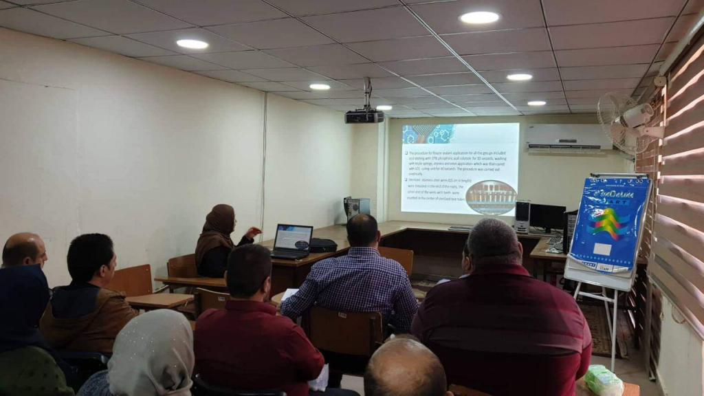 عقد في قاعة البحوث العلميةالتابعة لفرع الاطفال والتقويم وطب الاسنان الوقائي ضمن برنامج التعليم المستمر، حلقة نقاشية تحت عنوانDental Bleachingالقتها ا.م.د. ريا جاسم النعيمي.