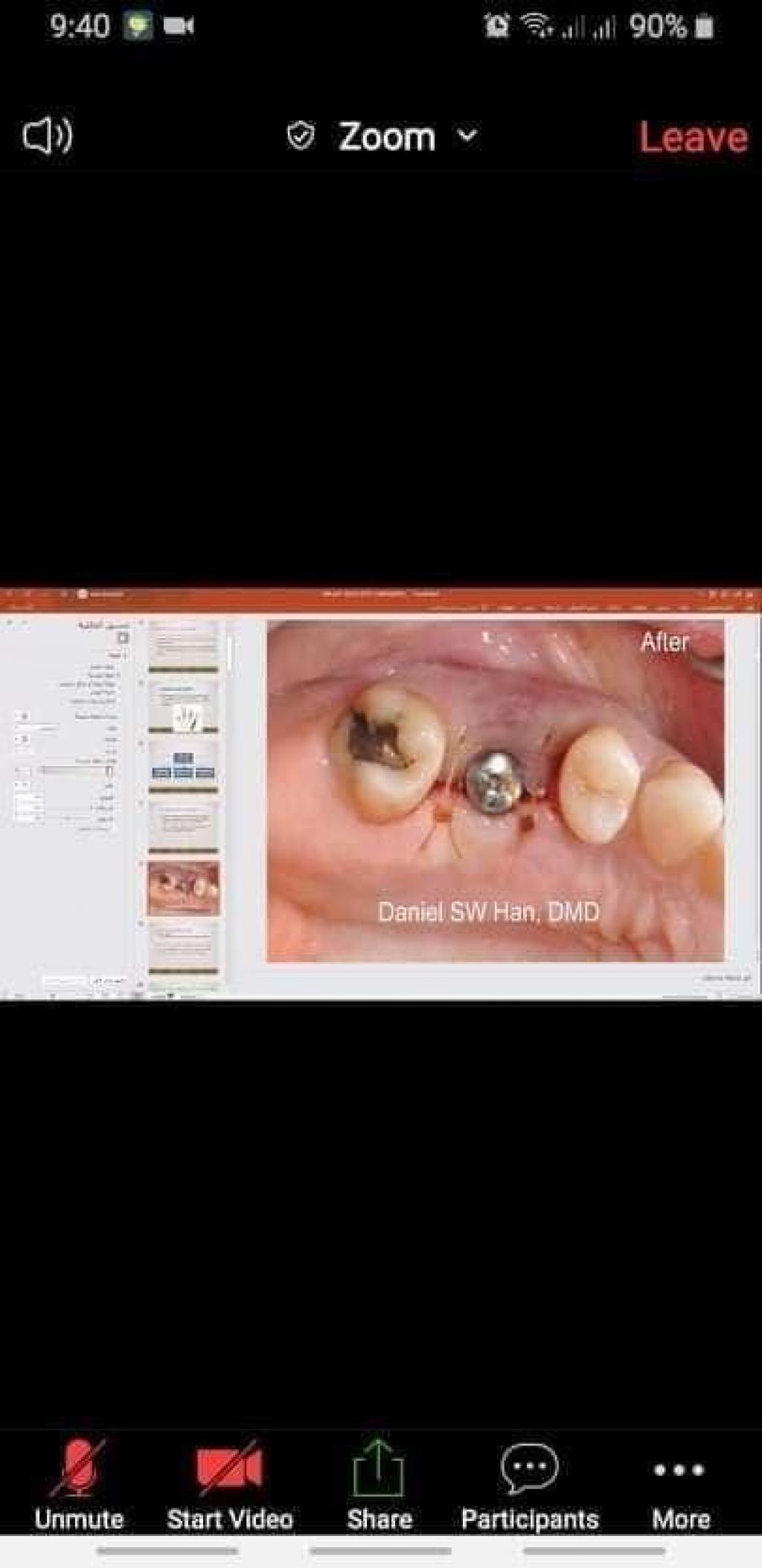(المكونات الصناعية لزراعة الاسنان). وذلك في يوم الاحد الموافق لـ ١٧ ايار ٢٠٢٠. من خلال برنامج zoom الالكتروني.