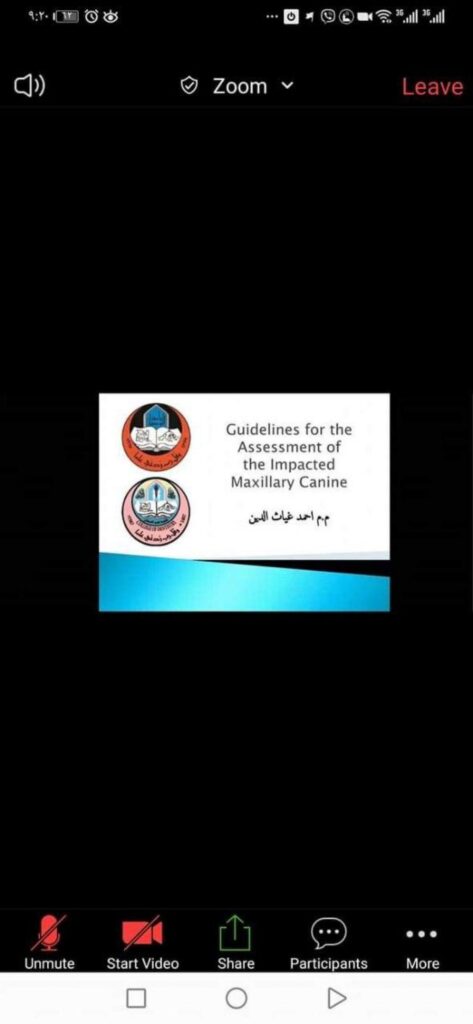 (المكونات الصناعية لزراعة الاسنان). وذلك في يوم الاحد الموافق لـ ١٧ ايار ٢٠٢٠. من خلال برنامج zoom الالكتروني.