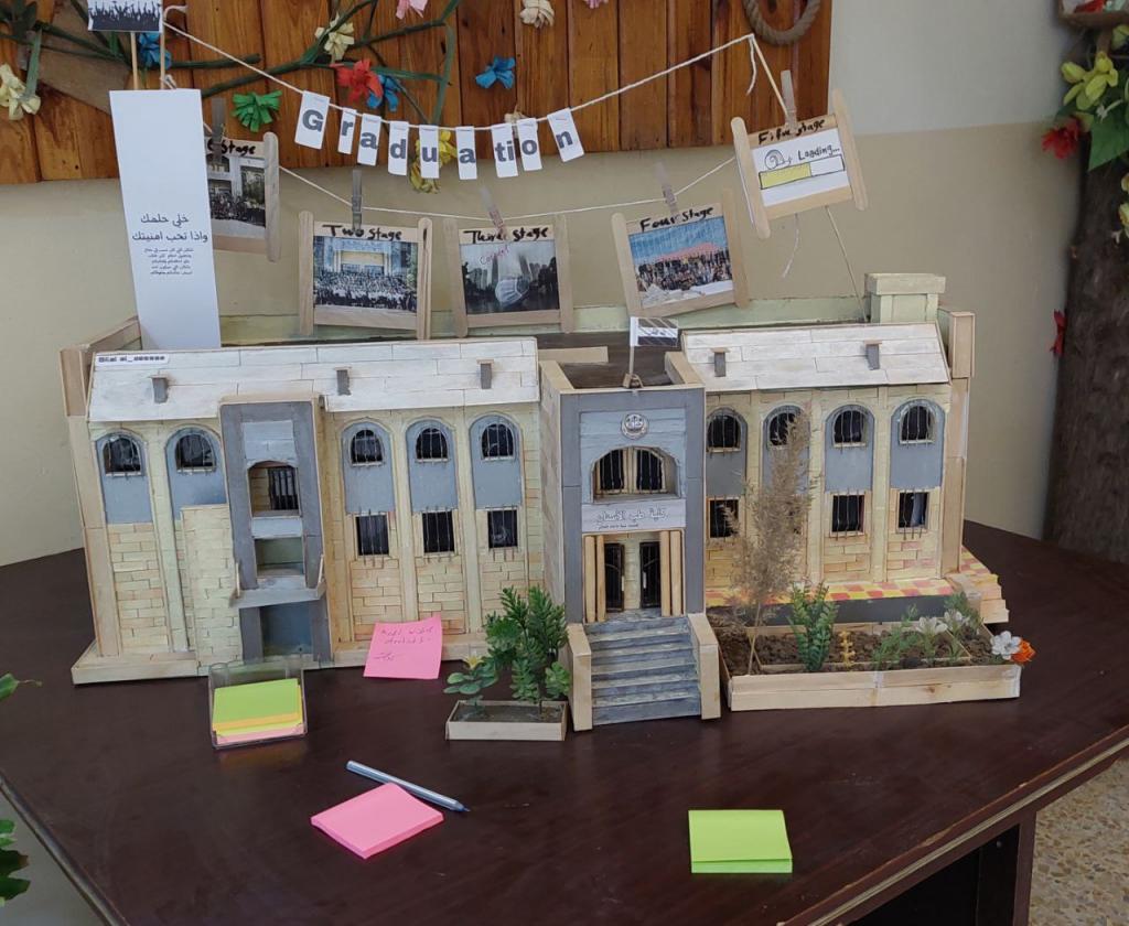 و تم نصب هذا المجسم أمام ممر مكتب السيد العميد تشجيعاً لدور الطلبة ونشاطهم الفني وأعمالهم الإبداعية، وبجانبه طاولة لكتابة الأمنيات للمارين.