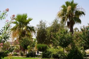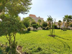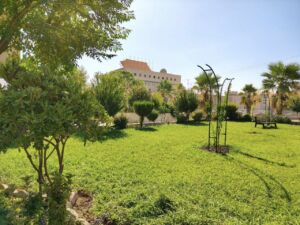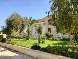 وتشمل أعمال المتابعة والعناية المستمرة الإشراف على برامج الري المنتظمة، وأعمال التقليم والتهذيب الفني للنباتات والأشجار، إلى جانب برامج التسميد المتخصصة التي تضمن نمواً صحياً ومزدهراً للمساحات الخضراء، بما يحافظ على هذا المشهد الطبيعي الخلاب الذي يضفي على الكلية طابعاً جمالياً متفرداً.