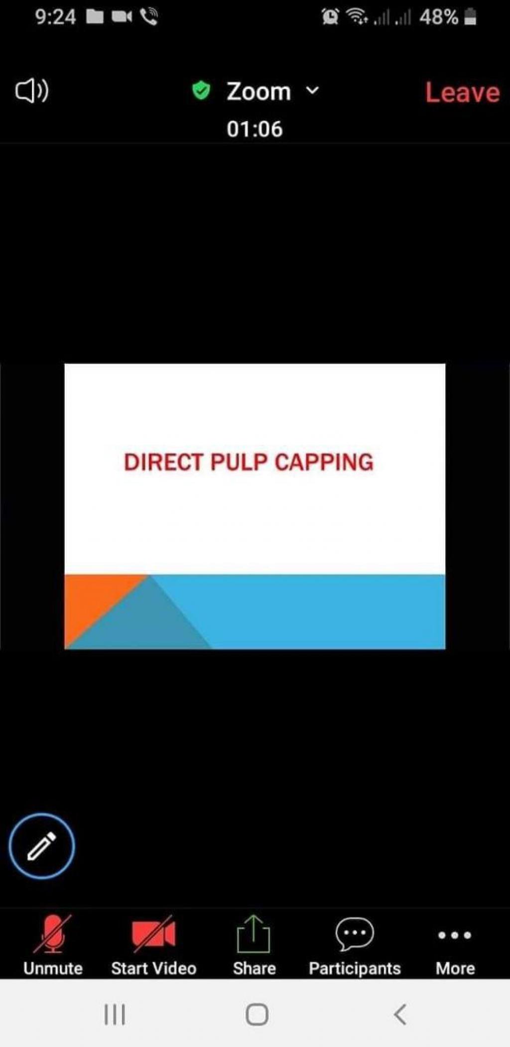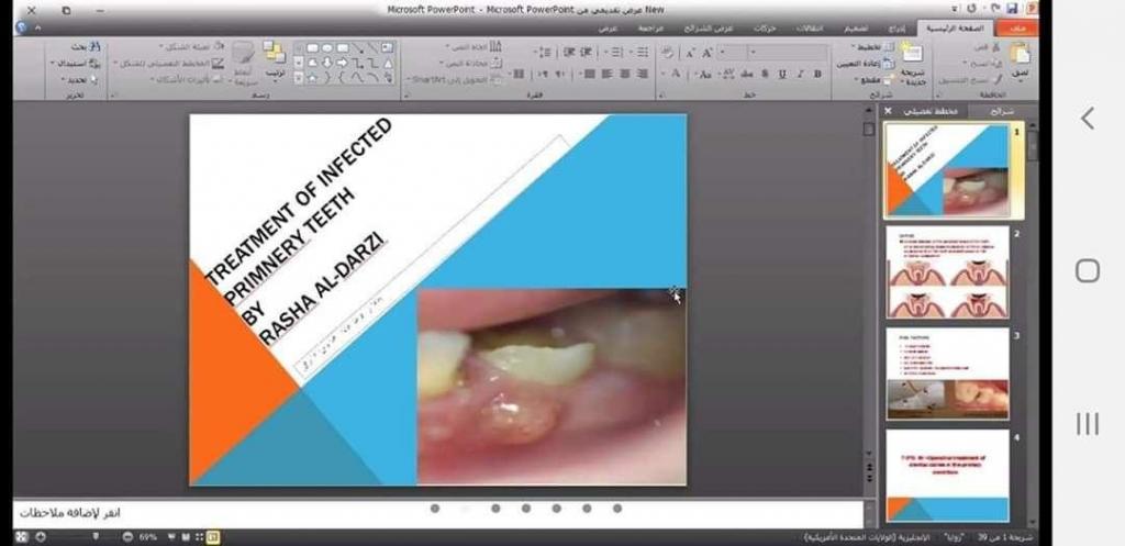 ضمن نشاطات التعليم الالكتروني في فرع التقويم والاطفال وطب الاسنان الوقائي، اقام الفرع حلقته النقاشية الافتراضية من خلال تطبيق Zoom يوم الاحد المصادف ٧ حزيران ٢٠٢٠ تحت عنوان:Treatment of infected primary teethطرق معالجة الاسنان اللبنية المصابةقدم الحلقة النقاشية (المدرس المساعد رشا يحيى الدرزي) حيث تناولت الحلقة النقاشية التعريف وشرح الطرق العلاجية والمختلفة في علاج اصابات الاسنان اللبنية وفوائد دلالات استخدام كل طريقة..بما يسهل الحفاظ على الأسنان اللبنية لاطول فترة ممكنة ولحين بزوغ الاسنان الدائمية..وقد حضر الحلقة تدريسي الفرع، وفي نهاية المحاضرة اجاب المحاضر على استفسارات الحاضرين..