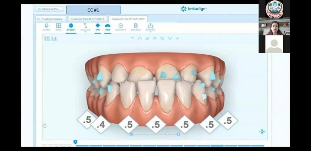 (الميكانيكية الحيوية والسريرية لتطبيقات معالجات تقويم الاسنان الشفاف)قدمت من خلالها الدكتورة شرح مفصل عن آلية واهمية وفائدة هذا الجهاز الجديد والمستخدم في علاج تقويم الاسنان. مستعرضة بامثلة لحالات مرضية تم علاجها باستخدام هذا الجهاز.