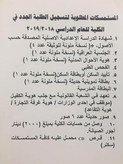 كلية طب الاسنان تستقبل الطلبة الجدد:شكلت عمادة الكلية لجنة خاصة لاستقبال الطلبة الجدد والمقبولين في الكلية بغية تسجيل اسمائهم وكذلك انجاز متطلبات الانتظام في الدوام الرسمي في المرحلة الاولى، والعمل مازال جارٍ في استكمال المعاملات علماً ان المستمسكات المطلوبة هي: