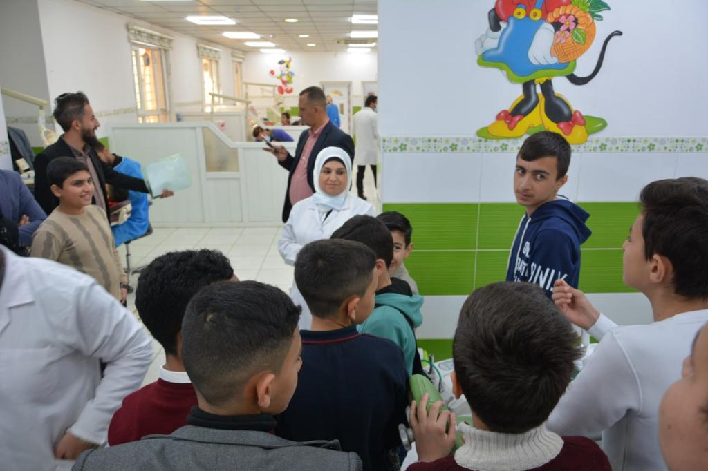 استقبلت كلية طب الأسنان اليوم الاربعاء ١/أذار / ٢٠٢٣ طلاب متوسطة علي بن ابي طالب ( عليه السلام) ومِلاكها الإداري والتربوي. حيث تضمنت الزيارة العيادات التعليمية في الكلية والمختبرات العلمية، شرح من خلالها السادة التدريسيون في الكلية للطلبة أهم التوصيات التي يجب اتباعها للحفاظ على صحة الأسنان وأهمية ذلك في الحفاظ على صحة الإنسان وجماليته. كما تم تثفيف الطلبة بدور طبيب الأسنان في المجتمع وأهم العلاجات التي يقدمها طبيب الأسنان.و أثنت عمادة كلية طب الأسنان على مبادرة المتوسطة ودورها في ترغيب أبنائنا الطلبة بهذا التخصص والعلم المهم، كما قدمت إدارة المدرسة شكرها وتقديرها لعمادة الكلية ومِلاكها على حسن الاستقبال والتنظيم، داعية العلي القدير لعمادة الكلية وجامعة الموصل المزيد من التقدم و الرفعة خدمة للبلد والمجتمع.