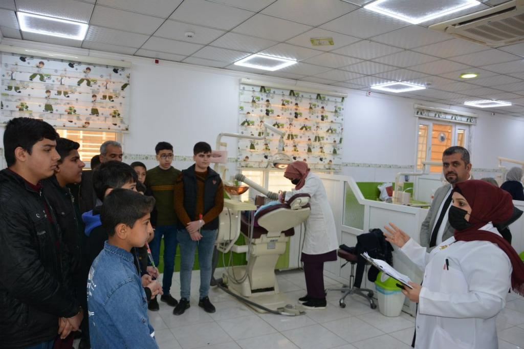 استقبلت كلية طب الأسنان اليوم الخميس الموافق ل ٢٤/اذار / ٢٠٢٢ طلبة متوسطة انس بن مالك للبنين و كادرها التربوي. شملت الزيارة مستشفى طب الاسنان التعليمي بفروعها السريرية والمختبرية، قدم من خلالها أعضاء الهيئة التدريسية في الفروع العلمية شرحاً مبسطاً عن دور الكلية و دور طبيب الأسنان في المجتمع وأهمية الحفاظ على صحة الفم والأسنان. وشجعت عمادة الكلية وكادرها التدريسي هذه المبادرة عادّة إياها من الخطوات المهمة لتثقيف أبنائنا طلبة المدارس في مسيرتهم التعليمية القادمة في الجامعة وكلياتها و أقسامها.