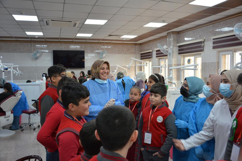 استقبلت كلية طب الأسنان اليوم الاحد الموافق ل ٢٧/اذار / ٢٠٢٢ طلبة مدرسة اليمان الابتدائية الاهلية و كادرها التربوي. شملت الزيارة مستشفى طب الاسنان التعليمي بفروعها السريرية والمختبرية، قدم من خلالها أعضاء الهيئة التدريسية في الفروع العلمية شرحاً مبسطاً عن دور الكلية و دور طبيب الأسنان في المجتمع وأهمية الحفاظ على صحة الفم والأسنان. وشجعت عمادة الكلية وكادرها التدريسي هذه المبادرة عادّة إياها من الخطوات المهمة لتثقيف أبنائنا طلبة المدارس في مسيرتهم التعليمية القادمة في الجامعة وكلياتها و أقسامها.