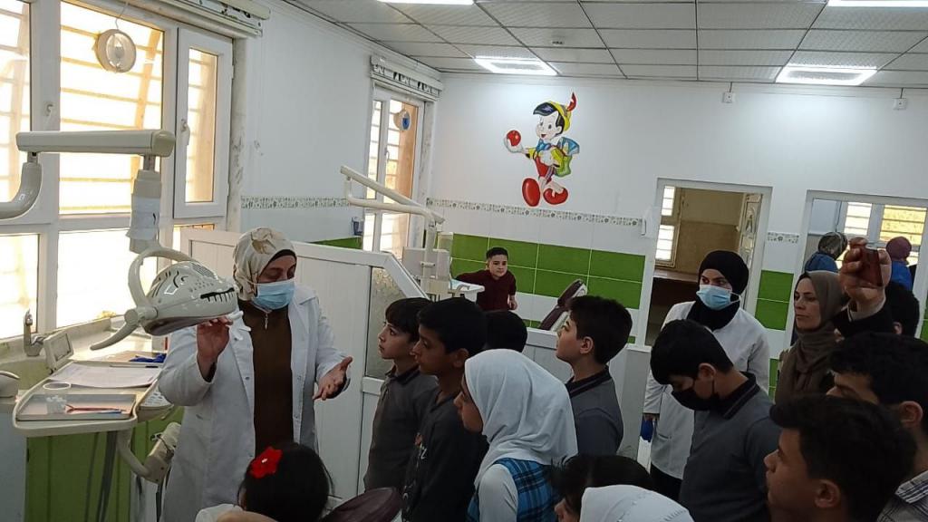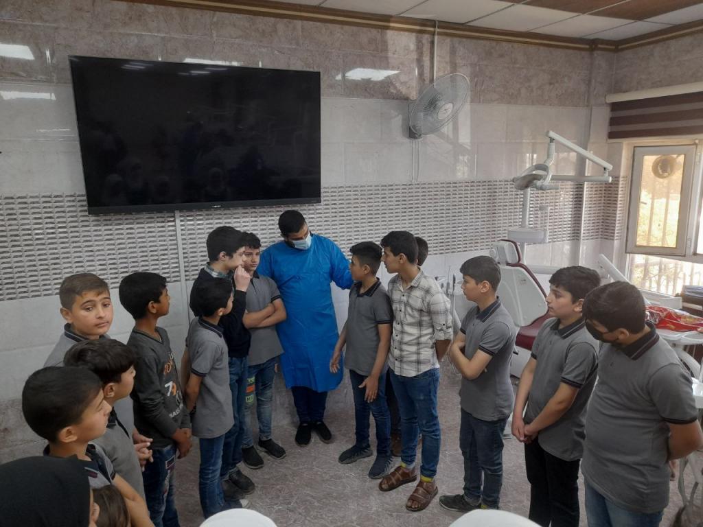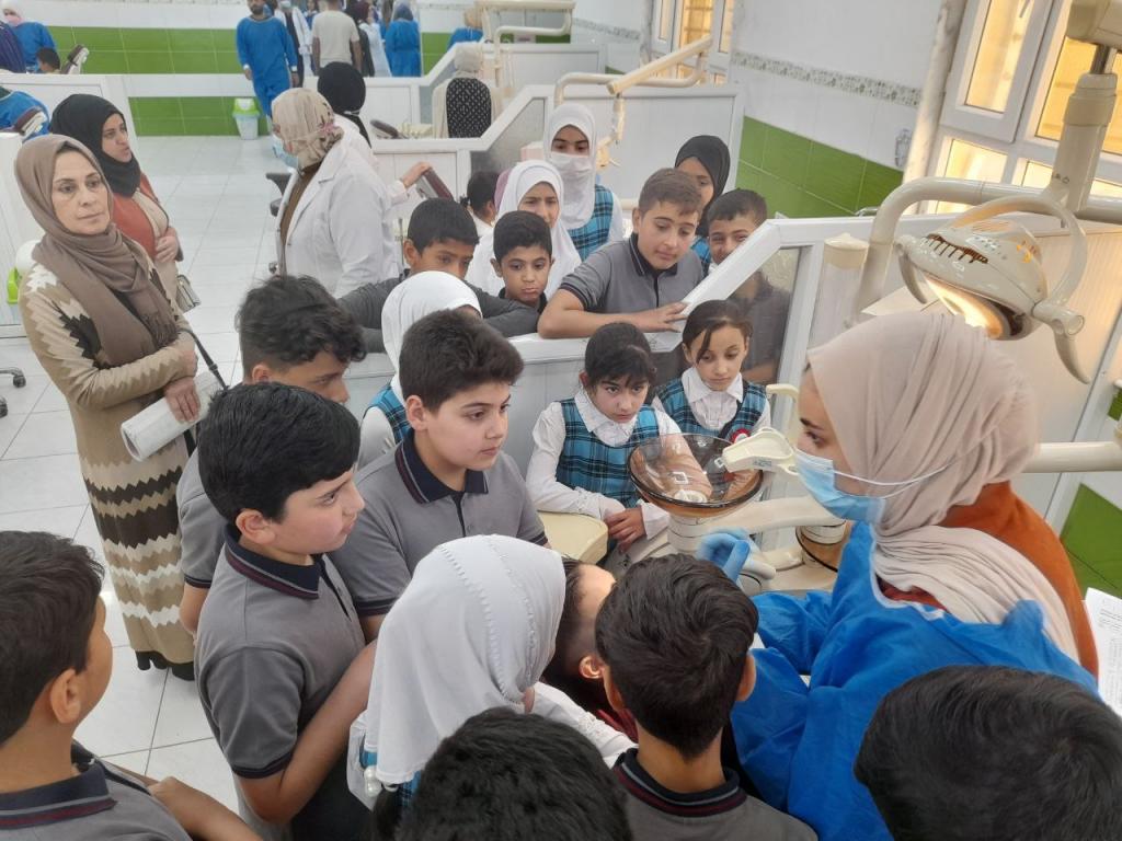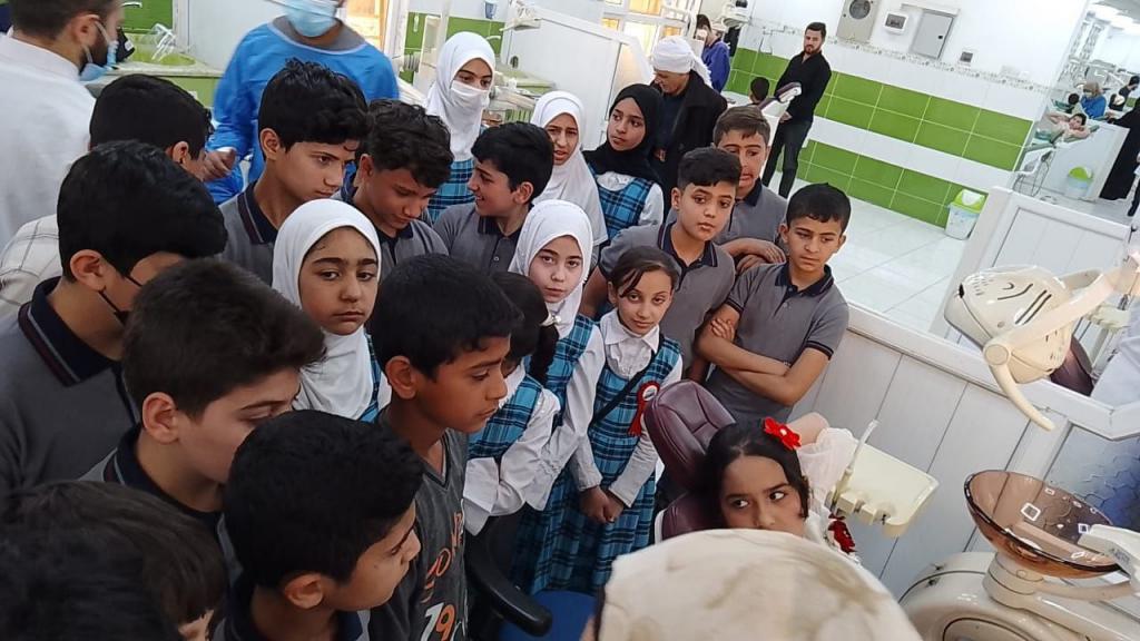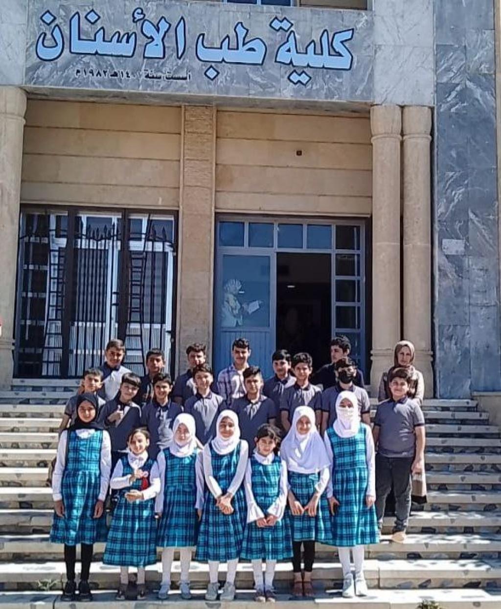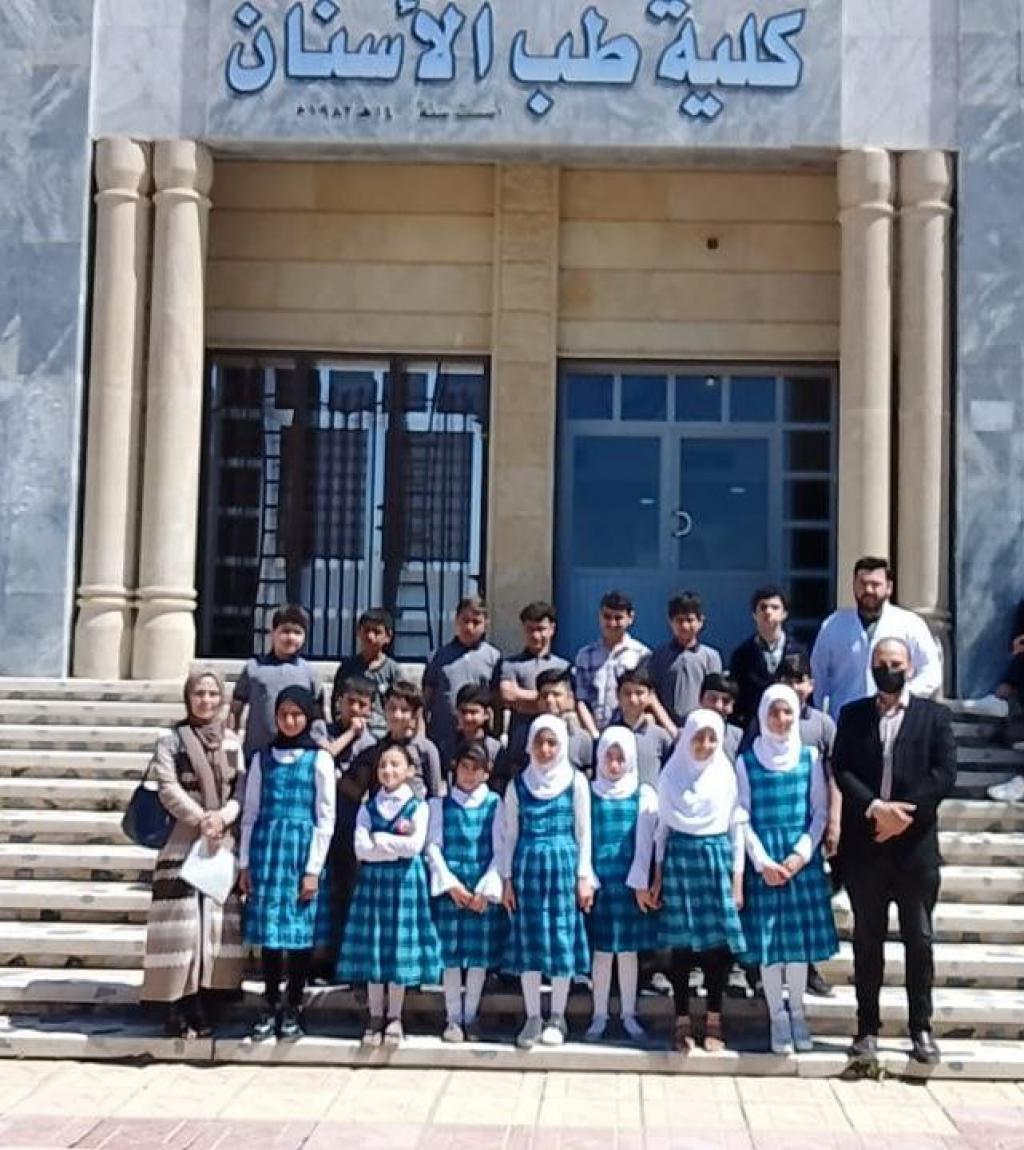 استقبلت كلية طب الأسنان يوم الخميس الموافق ٢١/نيسان/٢٠٢٢ تلاميذ مدرسة دار العلوم الأهلية والكادر التربوي المرافق. شملت الزيارة العيادات التعليمية، حيث أجريت لهم جولة في الفروع العلمية قدم من خلالها أعضاء الهيئة التدريسية في الفروع العلمية شروحات مبسطة عن أهمية العناية بالفم والأسنان.