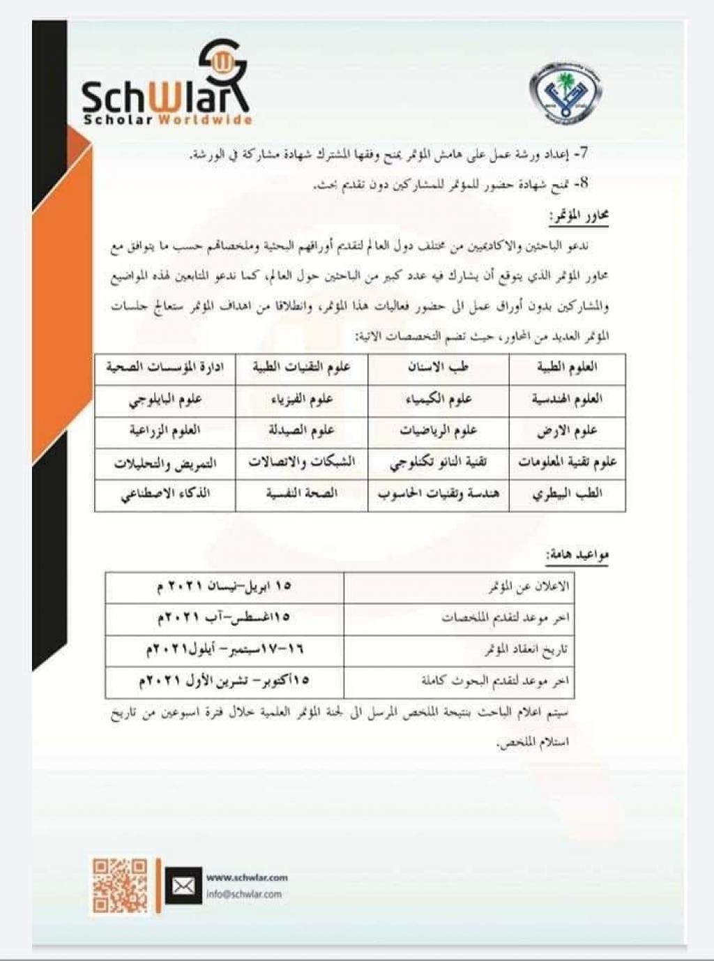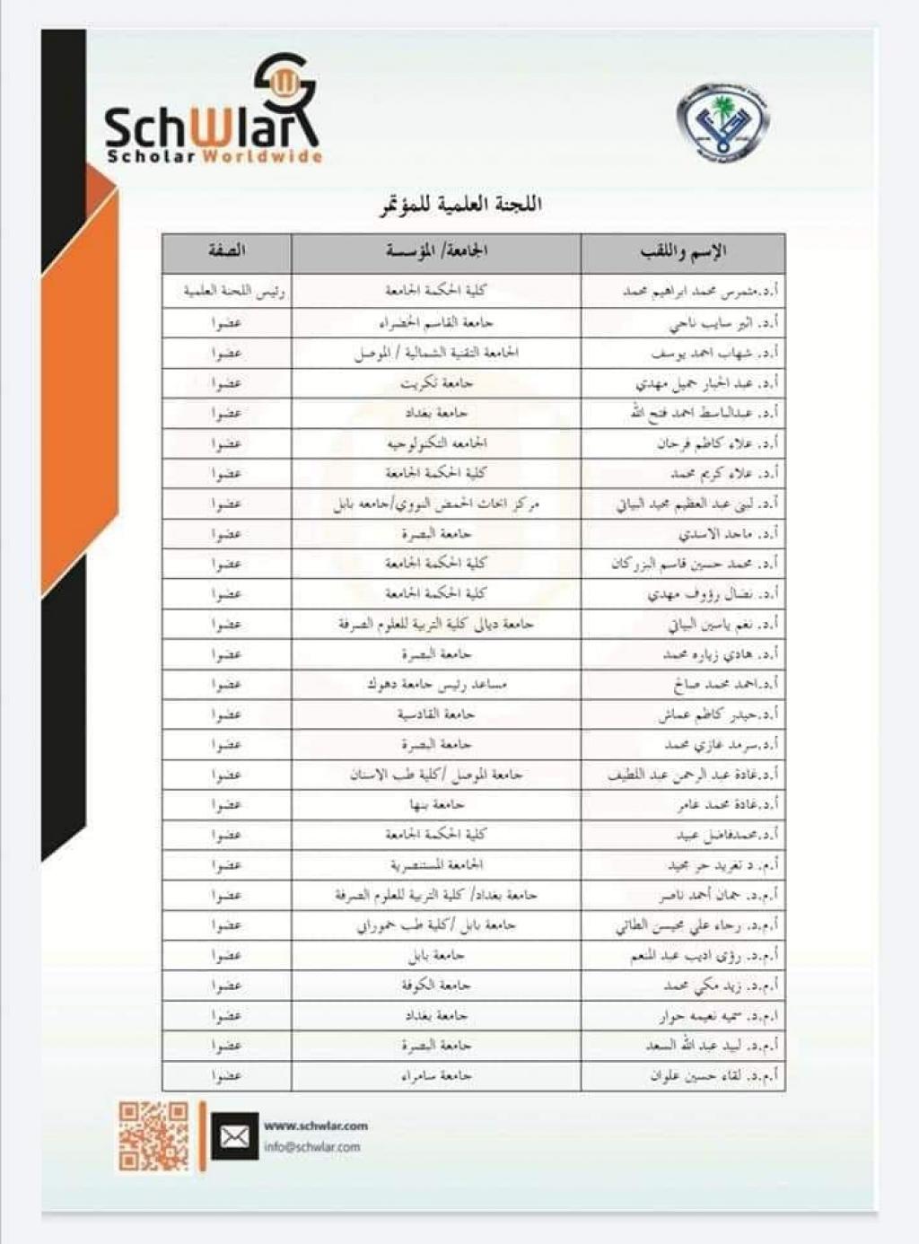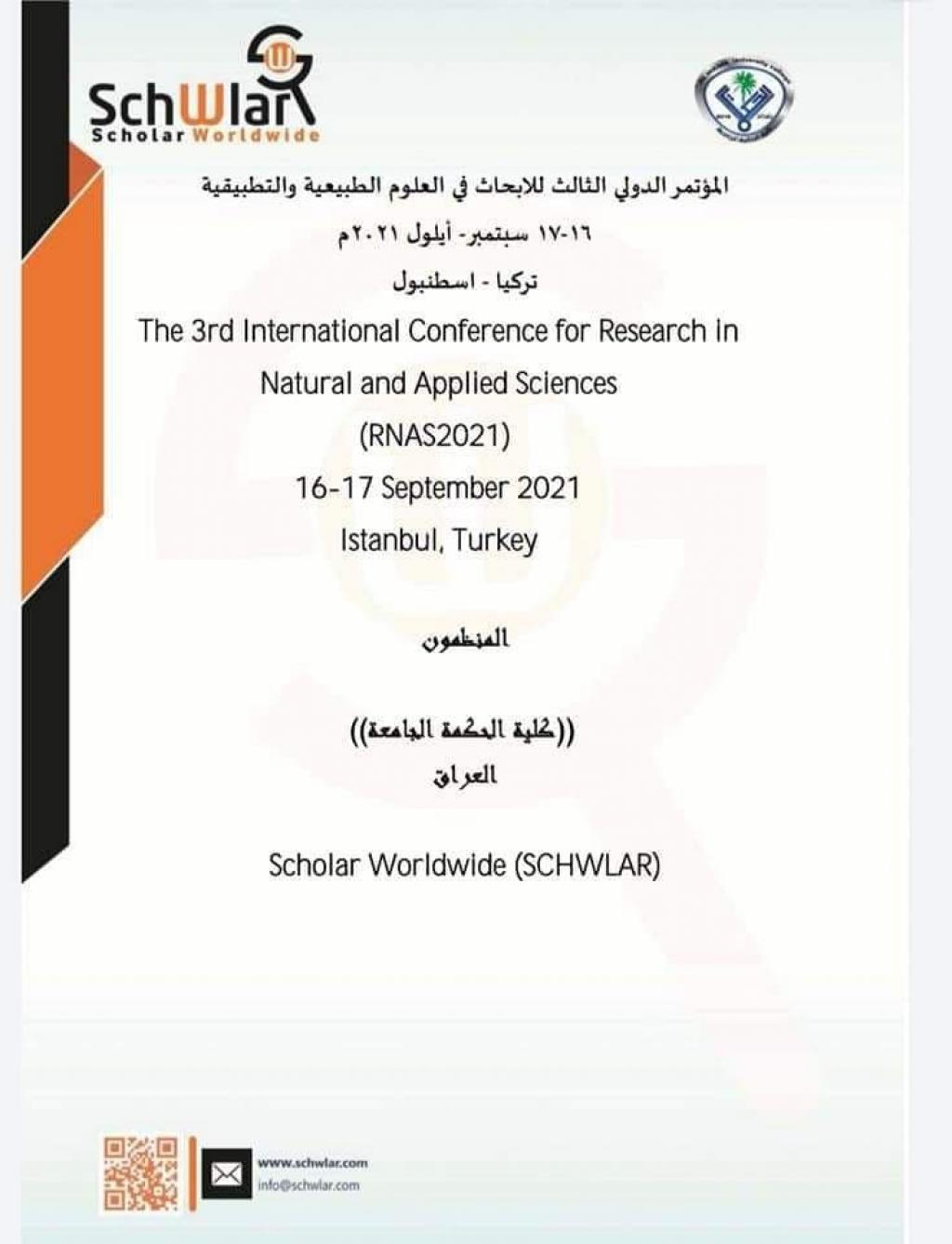 تشارك الأستاذ الدكتور غادة عبد الرحمن طاقة في المؤتمر الثالث للابحاث في العلوم الطبيعية و التطبيقية المزمع إقامته يومي ١٦ و ١٧/ ايلول في إسطنبول / تركيا ، و الذي تنظمه كلية الحكمة من العراق و مؤسسة scholar worldwide بصفة عضو للجنة العلمية. و يشمل المؤتمر العديد من المحاور التطبيقية و العلوم الطبية. و يهدف المؤتمر إلى توفير منصة للباحثين و الأكاديميين و تبادل الخبرات و اختزال الحدود بينهم و خلق بيئة علمية لعرض الأعمال العلمية و براءات الاختراع.