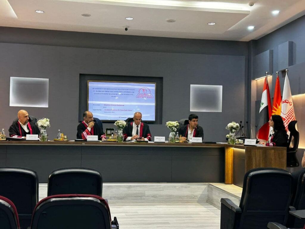 شارك الأستاذ الدكتور علي راجح الخطيب معاون العميد للشؤون العلمية والأستاذ المساعد الدكتور سرمد صبحي صالح رئيس فرع الأطفال والتقويم وطب الأسنان الوقائي في كلية طب الأسنان / جامعة الموصل في مناقشة رسالة ماجستير في تقويم الأسنان للطالبة خرمان عثمان محمود في كلية طب الأسنان / جامعة هولير الطبية وذلك في يوم الخميس الموافق ٢٠ / تشرين الثاني/ ٢٠٢٥.