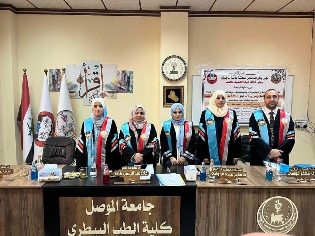 مشاركة تدريسي من كلية طب الاسنان فرع علوم طب الاسنان الاساسية في مناقشة رسالة الماجستير