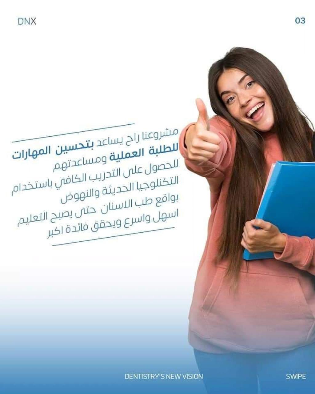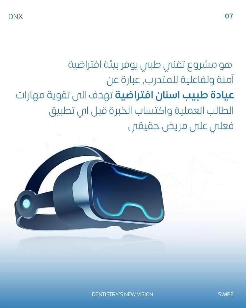 يقوم مجموعة من طلبة جامعة الموصل بتمويل من منظمة الخبراء الفرنسية و بمشاركة الطالبة سارة فراس من كلية طب الأسنان/ المرحلة الثانية بمشروع عن عيادة طب أسنان افتراضية. يساعد هذا المشروع على تقوية مهارات الطالب العملية في بيئة افتراضية تسهم في زيادة مبادئ التباعد الاجتماعي و تزيد من فرص تدريب الطلبة في الحالات الوبائية و حتى في الظروف الاعتيادية. و تعد هذه المشاريع إحدى النشاطات الطلابية و التعليمية التي تدعمها عمادة كلية طب الأسنان و التي ترمي إلى استمرار العملية التعليمية و الإبداعية رغم الظروف الوبائية.