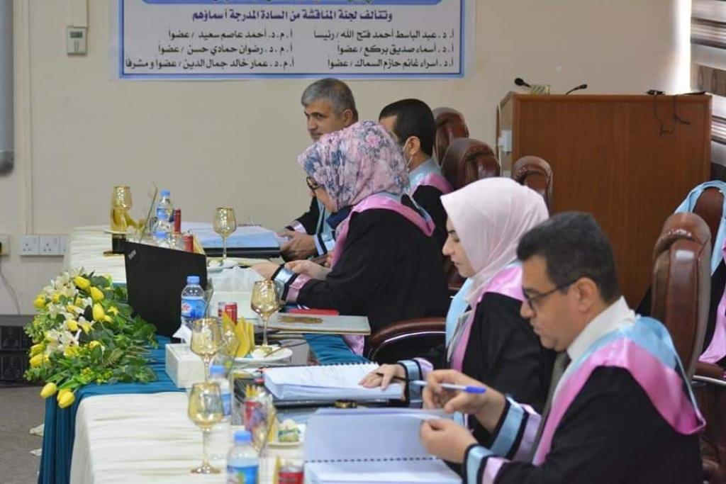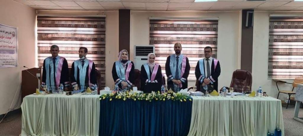 والأستاذ الدكتور إسراء غانم حازم السماك و الأستاذ المساعد احمد عاصم سعيد والأستاذ مساعد الدكتور رضوان حمادي حسن والأستاذ المساعد دكتور عمار خالد كمال الدين عضواً ومشرفاً..