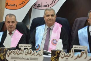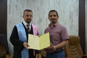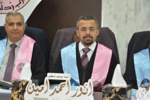 ترأس لجنة المناقشة الأستاذ الدكتور عماد فرحان علي، وبعضوية الأستاذ المساعد الدكتورة منار مظفر انور والأستاذ المساعد الدكتور انور احمد امين والأستاذ المساعد الدكتورة صبا حازم حسن والأستاذ المساعد الدكتورة ايناس طلب محسن، وبعضوية وإشراف الأستاذ المساعد الدكتور زيد برهان سعيد والأستاذ المساعد الدكتور جاسم محمد عبدو.