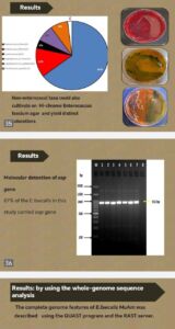تضمنت الدراسة ايضا تحليل تسلسل الجينوم الكامل للبكتيريا الاكثر سيادة في قنوات الجذور المصابة Enterococcus faecalis MuAm باستخدام تقنية Illumina Novaseq وتضمن التحليل الخريطة الوراثية والقرابة الوراثية مع الانواع الاكثر صلة مع هذه السلالة والجينات المسببة للأمراض والجينات المقاومة للمضادات الحيوية.