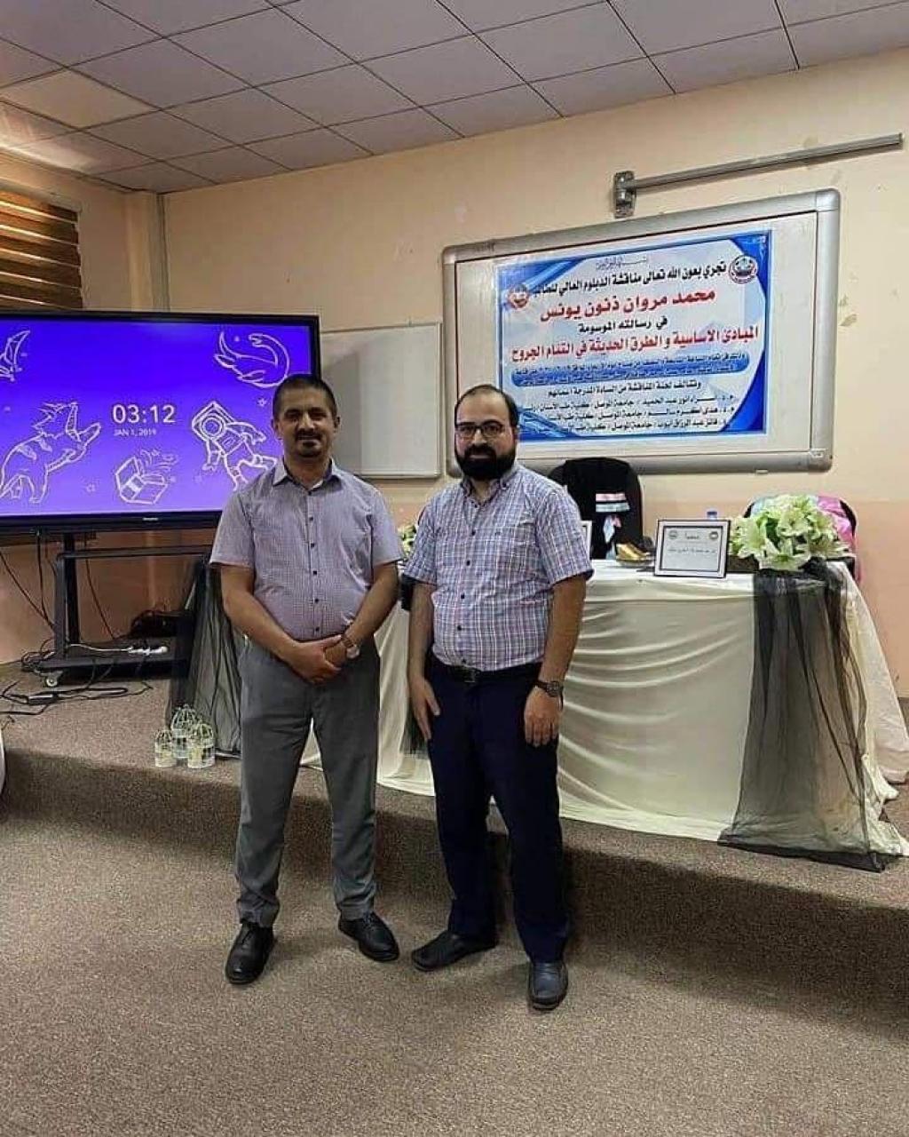 و تألفت لجنة المناقشة من : (م. إسراء أنور عبدالحميد) رئيسا ، (م. هدى اكرم سالم) عضواً و (م. فائز عبدالرزاق أيوب) عضوا و مشرفا. و تم قبول البحث بعد إجراء التعديلات المناسبة و بدرجة امتياز.