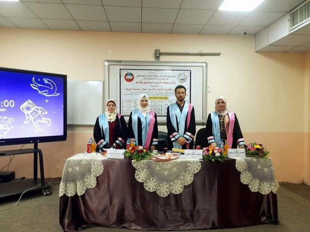 و تألفت لجنة المناقشة من : (م.د. سيف سعد علي ) رئيسا ، (م. هدى أكرم سليمان) عضواً و (م. د. نور عبد الله سليمان) عضوا و مشرفا. و تم قبول البحث بعد إجراء التعديلات المناسبة.