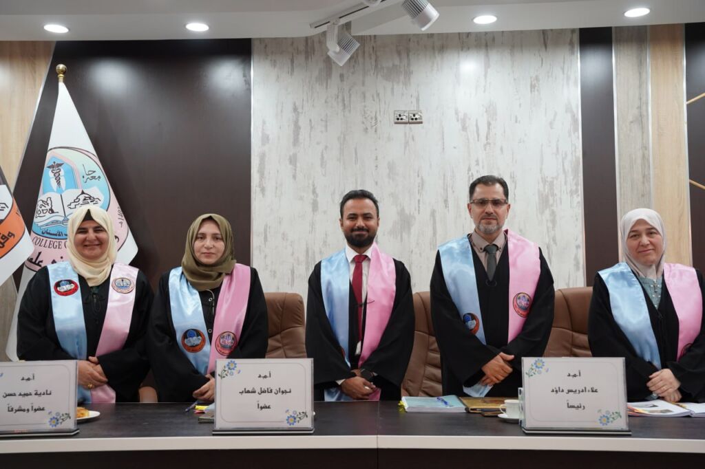 ترأس لجنة المناقشة الأستاذ المساعد علاء إدريس داؤد / جامعة الموصل /كلية طب الأسنان ، وعضوية كل من الأستاذ المساعد نجوان فاضل شهاب /جامعة الموصل/ كلية طب الأسنان والأستاذ نادية مظفر احمد جامعة الموصل/ كلية طب الاسنان ، وبإشراف وعضوية الأستاذ المساعد نادية حميد حسن / جامعة الموصل/ كلية طب الأسنان
