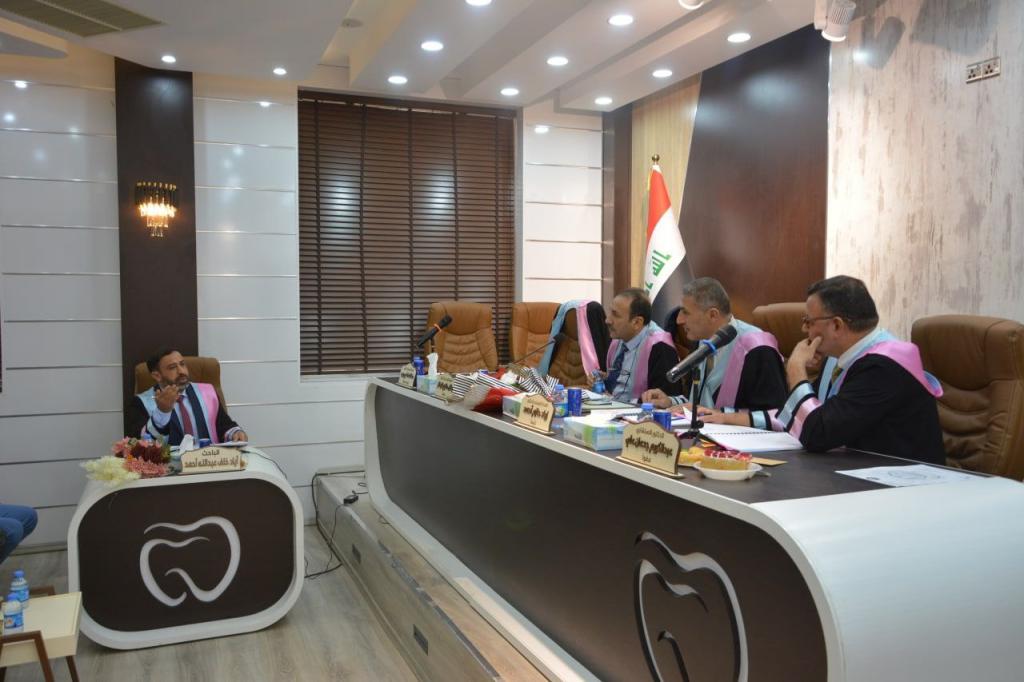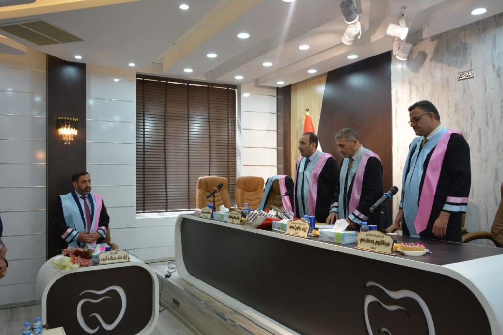 جرت اليوم الاحد الموافق ٩/تشرين الاول/٢٠٢٢ في فرع جراحة الفم والوجه والفكين/ كلية طب الاسنان / جامعة الموصل مناقشة رسالة الماجستير الموسومه: