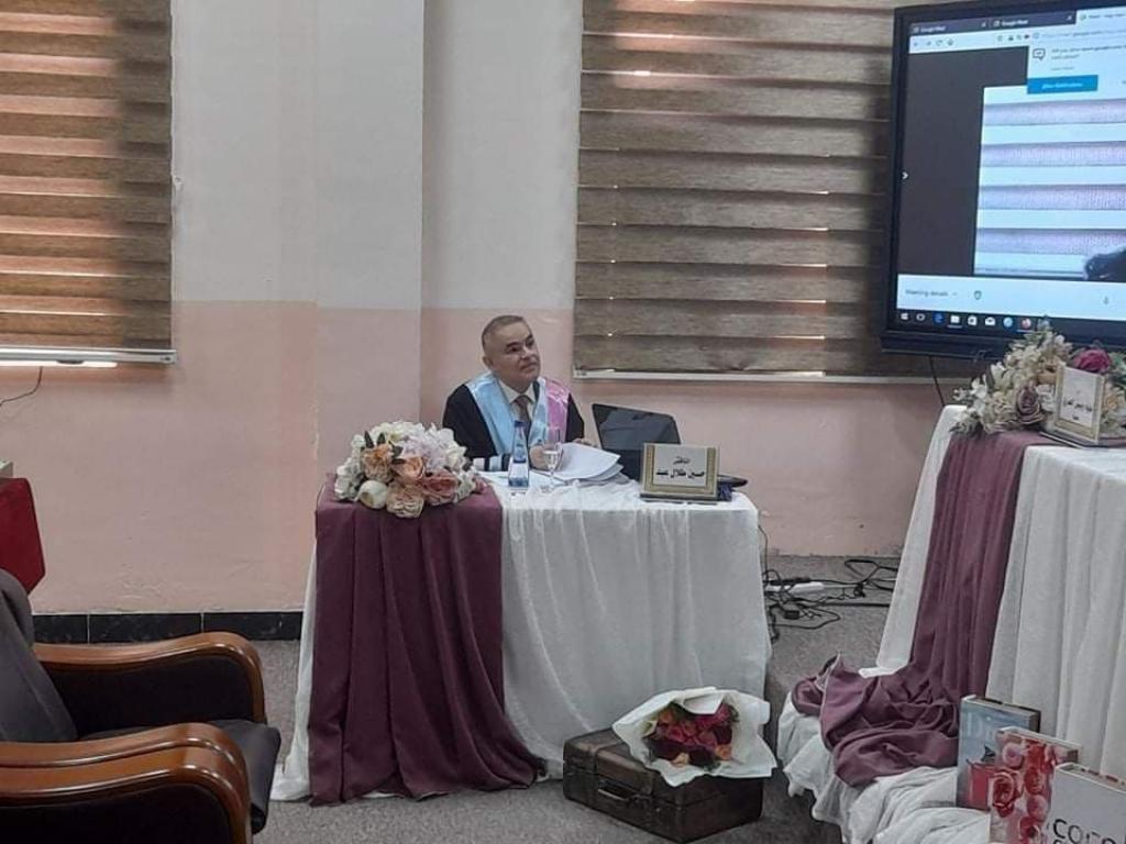 ترأس لجنة المناقشة الاستاذ المساعد دكتور عمار خالد جمال الدين النوري وبعضوية كل من الاستاذ المساعد دكتور رضوان حمادي حسن و الاستاذ المساعد نادية توفيق جعفر( جامعة دهوك ) ولااستاذ المساعد علياء وميض العمري (المشرف).