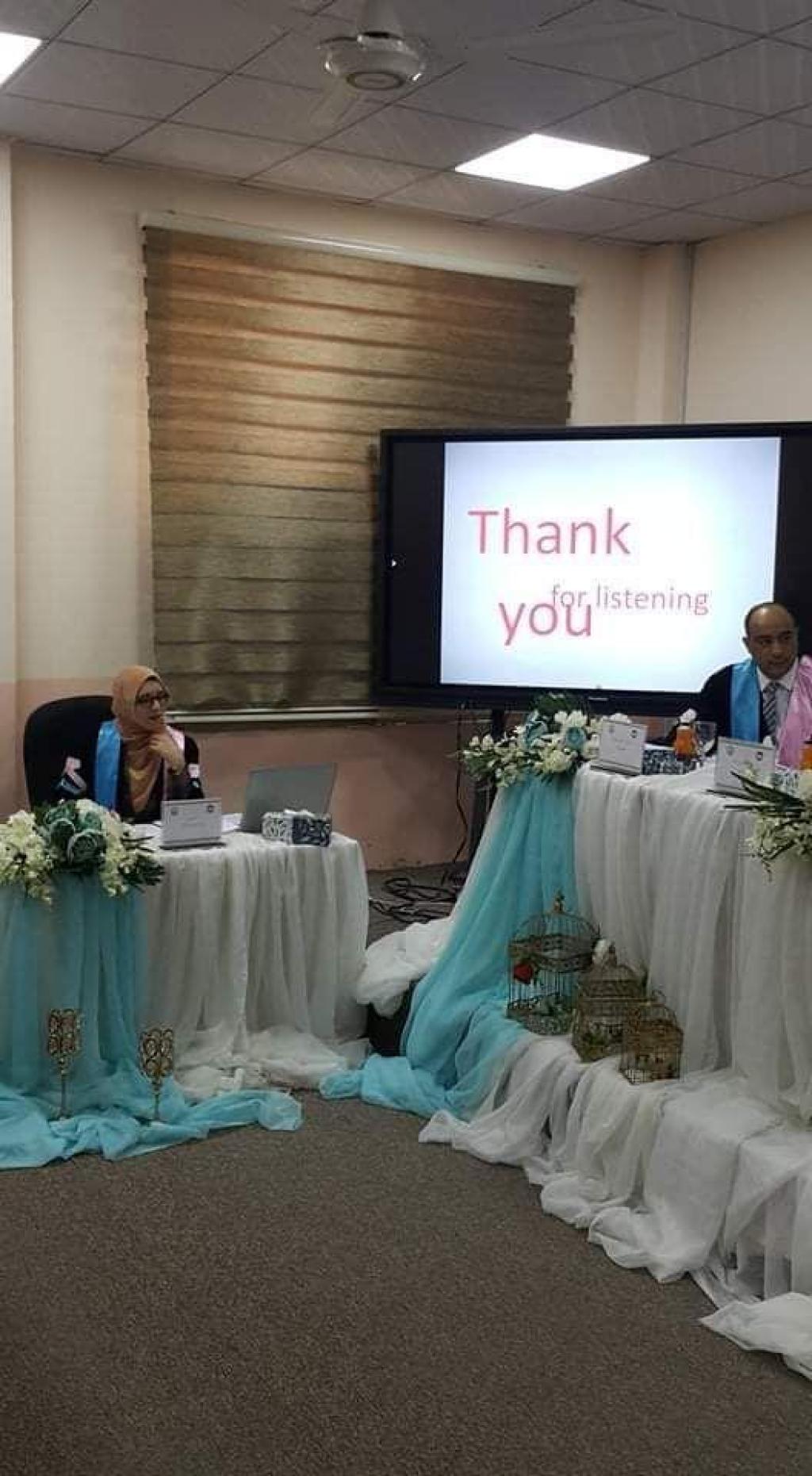 تمت على بركة الله اليوم الخميس الموافق 19/11/2020 مناقشة رسالة الماجستير للطالبة (إسراء رافد محمود) و الموسومة ( تأثير بعض الأعشاب والمواد الاصطناعية على تحسين قدرة اللعاب على معادلة الحامضية لدى مرضى تقويم الأسنان )